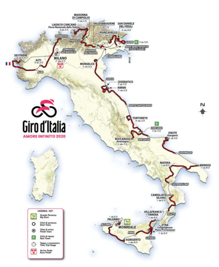 Ronde van Italië 2020 etappes en ritten Giro d’Italia